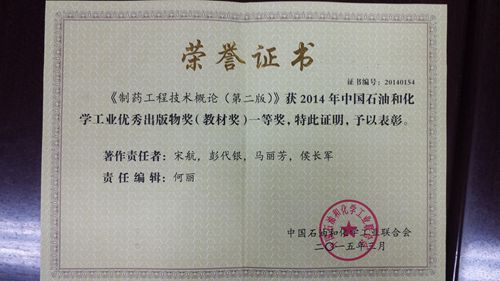 由中国石油和化学工业联合会开展的优秀出版物奖的评审结果近日揭晓,yL23411永利官网登录由宋航老师担任主编、马丽芳老师担任副主编,制药工程专业部分教师参与编写的教材《制药工程技术概论(第二版)》(化学工业出版社)荣获2014年度中国石油和化学工业联合会优秀出版物奖(教材奖)一等奖。