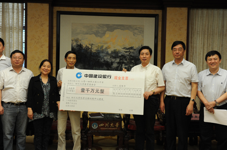 6月20日上午,姜维平校友四川大学客座教授聘任仪式暨四川大学化学工程训练中心捐赠仪式在望江校区明德楼(行政楼)贵宾厅举行。重庆圣华曦药业股份有限公司董事长姜维平先生、董事李长渝女士、副总经理林江,董事长秘书吴方兵,四川大学校长谢和平院士、校党委副书记李向成教授以及学校有关单位负责人参加了捐赠仪式。