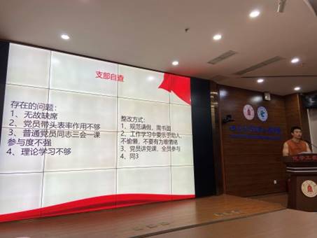 会议过程中,由党支部书记王坡同志主持,党支部开展了批评与自我批评。各支部同志积极参与其中,夏有强同志对自我进行了深刻的批评,他认为自己日常的思想理论学习过程较为欠缺,并为未来的学习实践找寻到了相应的方法。焦锟同志在对自我科研学习过程的问题进行反思的同时,也对党内的郑丽君同志进行了批评,提出了对该党员同志提高工作的主观能动性的期待。