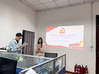接着,与会其他成员纷纷对唐郭璇同志与朱晨同志发表了意见。经过支部成员不记名投票,一致同意唐郭璇同志与朱晨同志发展为中共预备党员,最后邓松同志带领全体成员宣读了入党誓词。