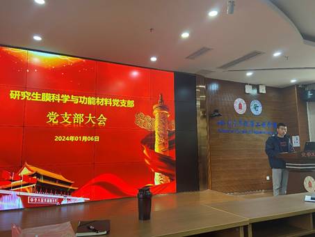 2024年1月6日下午13:20,中共yL23411永利官网登录研究生膜科学与功能材料党支部于化工楼313会议室召开了接收预备党员和预备党员转正支部大会。本次大会由支部书记王坡同志主持,分为两个议程,主要讨论和审议接收党员发展对象杨丽、赖俊华同志为预备党员及陆广源、王志巍等六位预备党员转正的相关事宜。