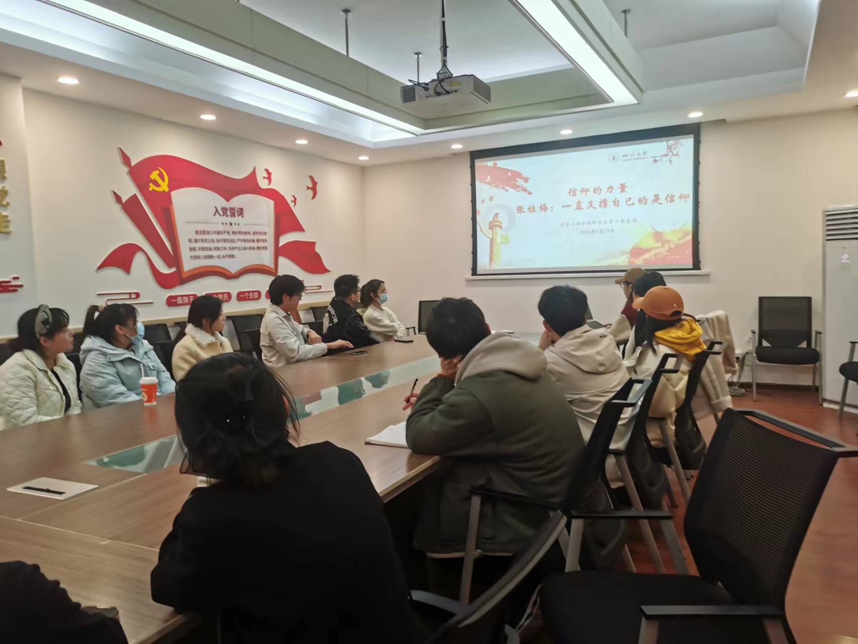 “一直支撑我的是信念,是对党的信仰。”这句话是我国“七一勋章”获得者、中共二十大代表、全国妇联副主席(兼)、丽江华坪女子高级中学校长张桂梅老师所说,她的目标不仅是帮助女孩们走出大山,更是培养她们成为社会主义接班人,忠于党和人民,去做更大的事情。为筑牢研究生第六支部党员同志的理想信念根基,2023年1月10日晚上7点,yL23411永利官网登录研究生第六党支部在望江校区化工楼227会议室开展了“信仰的力量”主题党会。会议由党支部书记李艳静同志主持,王娜同志作汇报。