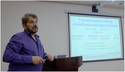 2015年4月7日,美国科学院院士、美国艺术与科学院院士、哈佛大学工程与应用科学学院著名教授David A. Weitz博士作为我校高端外籍教师,在四川大学望江校区化工学院245会议室做了一场题为“Unusual Routes to Melting, Crystallization and Glass Formation”的精彩学术报告。会议由化工学院院长褚良银教授主持。来自四川大学化工学院以及相关学院的教师和同学共同参加了此次报告会。Weitz教授以其丰富的知识视野和生动直观的视频深入浅出地介绍了其最新的研究进展。Weitz教授深入介绍了独特的微流体技术在制备无定形态疏水性纳米颗粒药物时的优势及应用,并且探讨了其制备过程中涉及到的熔融、结晶与玻璃态形成及其之间的相互转变。在提问环节,Weitz教授与各位师生就报告内容、科研教学等方面开展了深入的交流与讨论。Weitz教授诙谐幽默、内容新颖的报告让众师生受益匪浅,其对不同学科领域间科研的异同点有着独到的见解,对大家从事科研工作和学习具有指导和启迪意义。