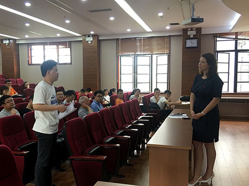在互动环节中,Ksenia博士与现场师生进行了探讨,师生们踊跃提问,Ksenia博士一一解答,现场学术氛围十分浓烈Ksenia博士还给予同学们极大的鼓励,希望他们在将来的科研过程中能够持之以恒,以及在未来科研工作要注意竞争和合作的协调性,表示非常欢迎同学们到她课题组进行交流。