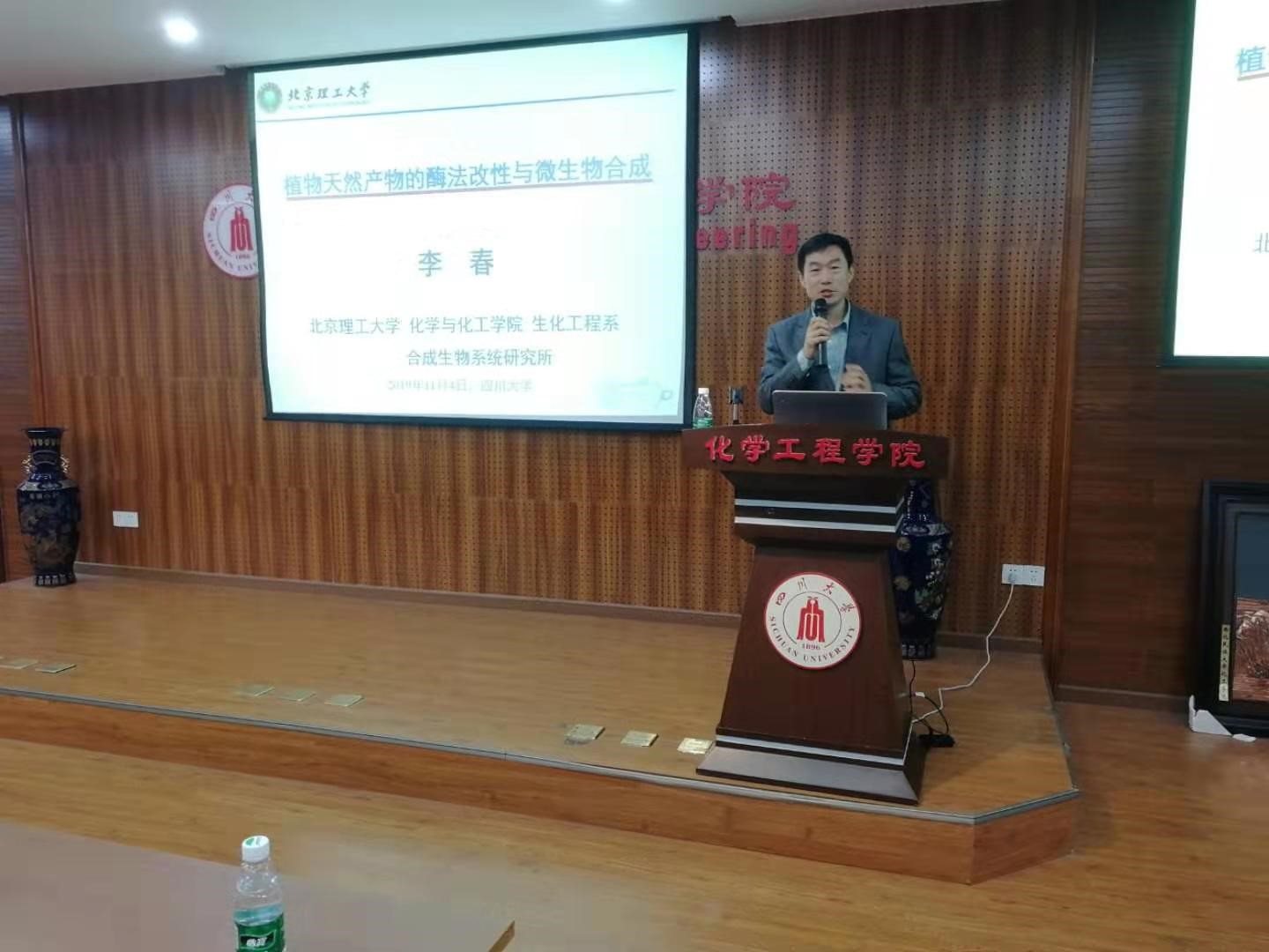 2019年11月4日,yL23411永利官网登录《化工学术大讲堂》邀请到北京理工大学化学与化工学院副院长李春教授,在化工学院313报告厅为我校师生做了题为《天然产物的酶法改性与微生物合成》的学术报告。学院唐盛伟副院长、钮大文副院长、院长助理兼制药与生物工程系主任李德富、张永奎教授、谢锐教授、刘文彬老师、葛黎明老师等教师和yL23411永利官网登录研究生近百人参加了此次报告会。