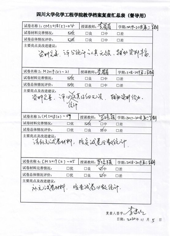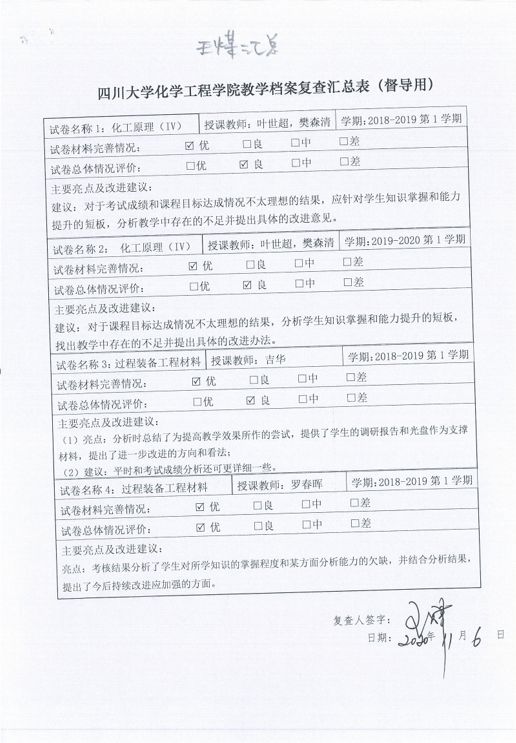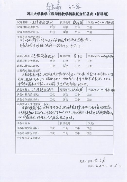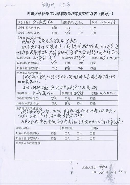根据本学期的工作计划安排,院督导于2020年10月28日-11月6日期间,对过程装备与控制专业的专业课试卷进行了抽查。