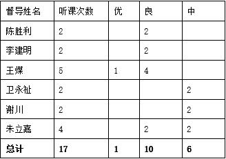 对新进老师听评课共17次,情况统计。