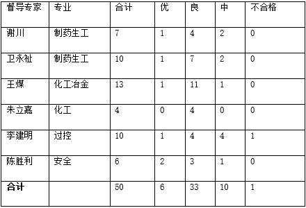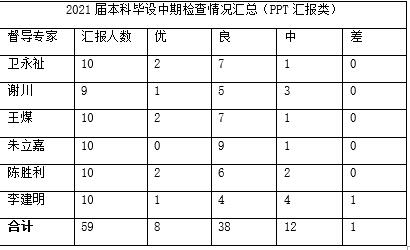 共参与6个专业50位同学的毕业答辩,占毕业生总人数的20%(优6人,良33人,中10人,不合格1人):