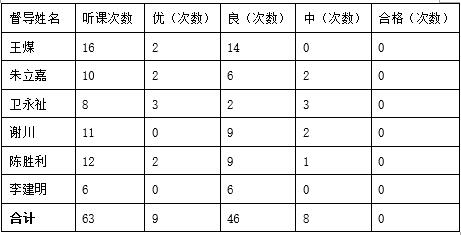 本学期共完成听评课63人次,其中优9次,占14.3%;良46次,占73.0%,中8次,占12.7%。听评课具体完成情况如下: