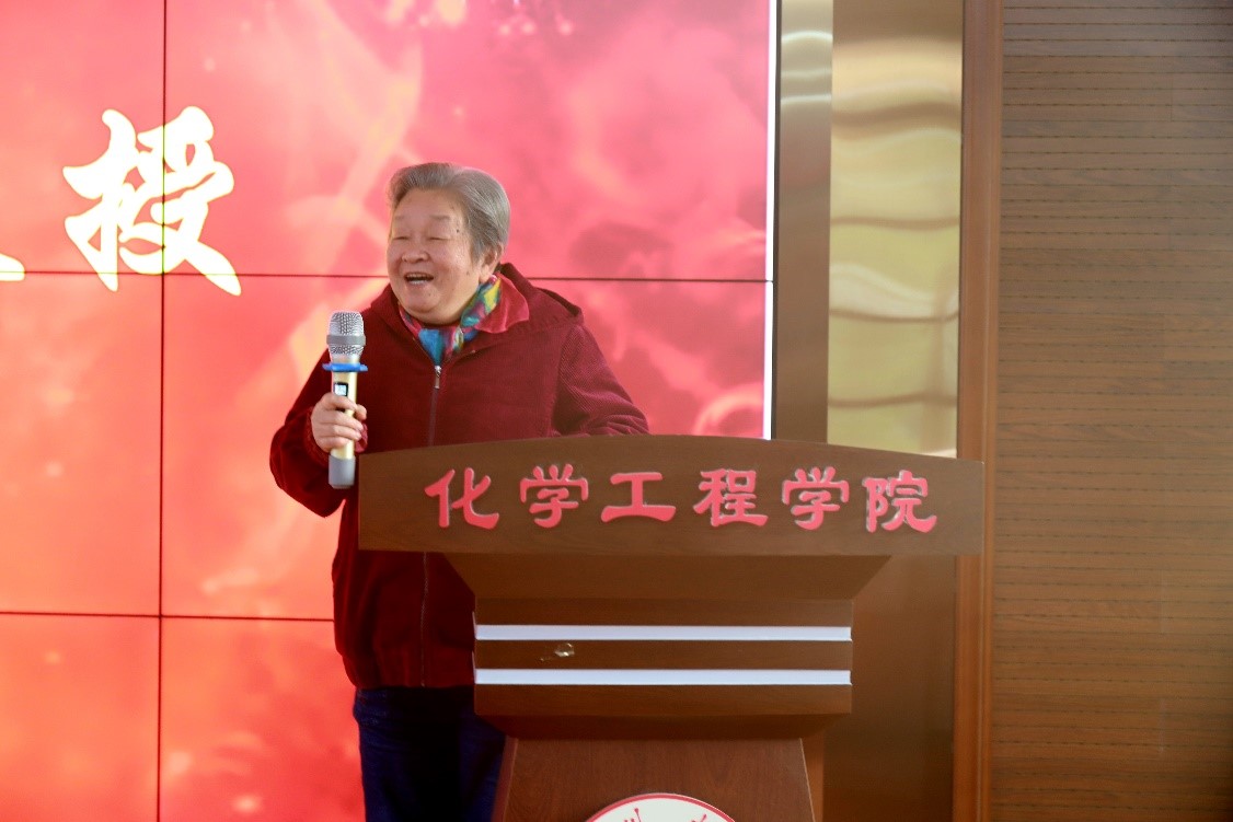 2020级博士研究生张龙程作为获奖学生代表发表感言。他表示“钟本和奖学金”是一份崇高的荣誉,更是一种激励,自己作为新一代的化工学子要正确认识化工、热爱化工,用专业的知识和能力投入到祖国未来的发展建设中去。