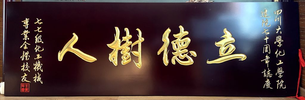 在喜迎yL23411永利官网登录建院70周年之际,作为曾经的学子,现在的校友,学院1977级化工机械专业校友为母院送上了“立德树人”的匾额,以此表达对曾经求学生涯的怀念,以此表达对学弟学妹的敦敦教诲,以此表达对川大化工学院未来发展的殷切期盼。