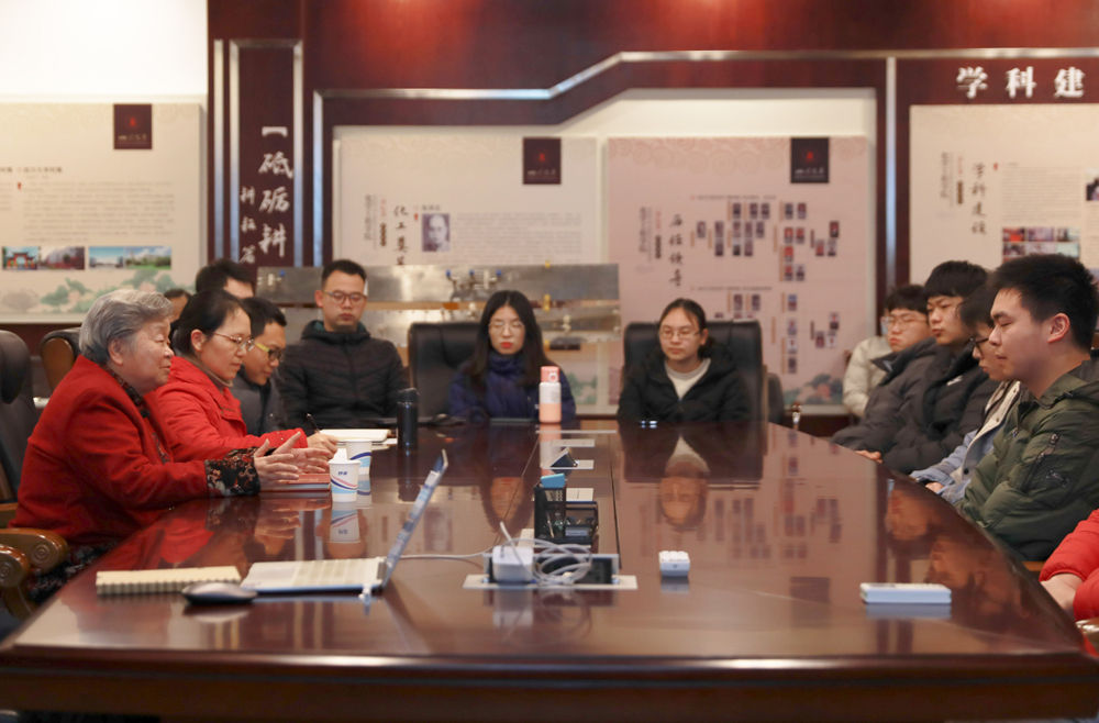 1月8日,钟本和(中)在制备分析室与团队教师、学生讨论。