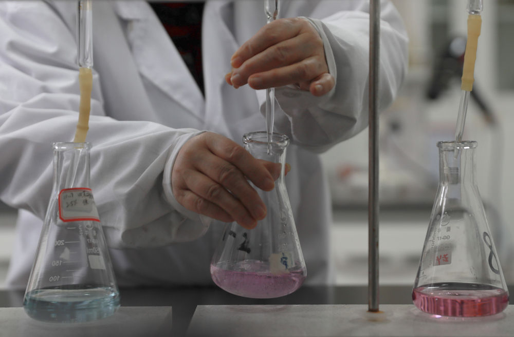 1月8日,钟本和在yL23411永利官网登录制备分析室里进行化学分析实验。