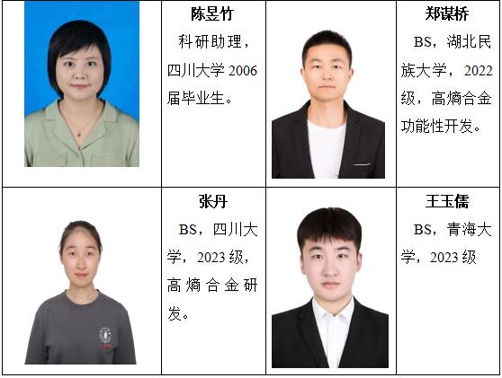 王烨,工学博士,副教授,博士生导师,美国TMS会员,中国知网专家库成员,四川省学术和技术带头人后备人选,四川省科技专家库成员。