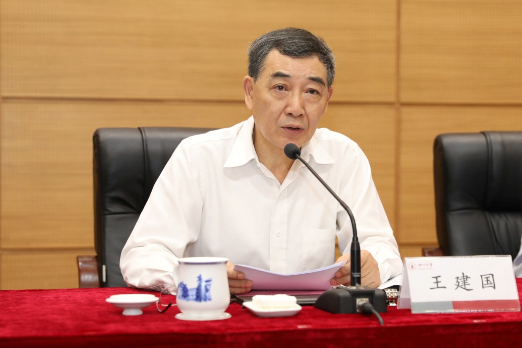 王建国表示,一分部署,九分落实。四川大学全体党员干部要更加紧密地团结在以习近平同志为核心的党中央周围,坚持以习近平新时代中国特色社会主义思想为指导,坚决贯彻党中央的决策部署,以对党的教育事业高度负责的态度,按照“四个到位”的要求,扎扎实实将主题教育不断向纵深推进,不忘初心、牢记使命,全面加快推进学校“两个伟大”,以优异成绩庆祝新中国成立70周年,为实现中华民族伟大复兴的中国梦而努力奋斗。