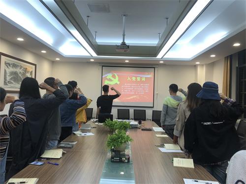会议伊始,徐志朗同志向大家传达了进行“不忘初心、牢记使命”主题教育的具体内容及其内涵和重要意义。接着,徐志朗同志带领党员同志们一起学习了《习近平总书记关于“不忘初心、牢记使命”论述摘编》,结合习近平总书记系列重要讲话精神,明确坚定“为中国人民谋幸福,为中华民族谋复兴,是中国共产党人的初心和使命”。徐志朗同志提出,党支部党员要重视主题教育,坚持学习论述内容,加强思想政治理论建设,全体党员同志要开展自我革命,提出整改意见,制定完善目标,勇于实干,积极行动,不忘初心,牢记使命,努力提升自我,实现人生价值。最后,支部书记带领支部全体党员重温入党誓词并宣誓。