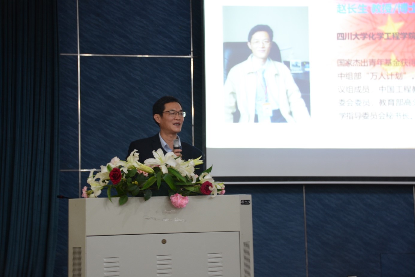 2019年11月22下午,化工系教工党支部与工学图书馆支部在江安二基楼B座报告厅举行了“共建党支部,共话双一流”主题党日活动暨“不忘初心,牢记使命”主题教育系列活动—大学生“双创”经验交流会。两个支部教师党员以及yL23411永利官网登录大二和大三全体学生参加了此次活动。活动由化工系党支部书记易美桂同志主持。化工学院院长赵长生教授,图书馆副馆长、党委副书记兼纪委书记杜小军老师,化工学院党委副书记兼纪委书记李天友老师等出席活动。