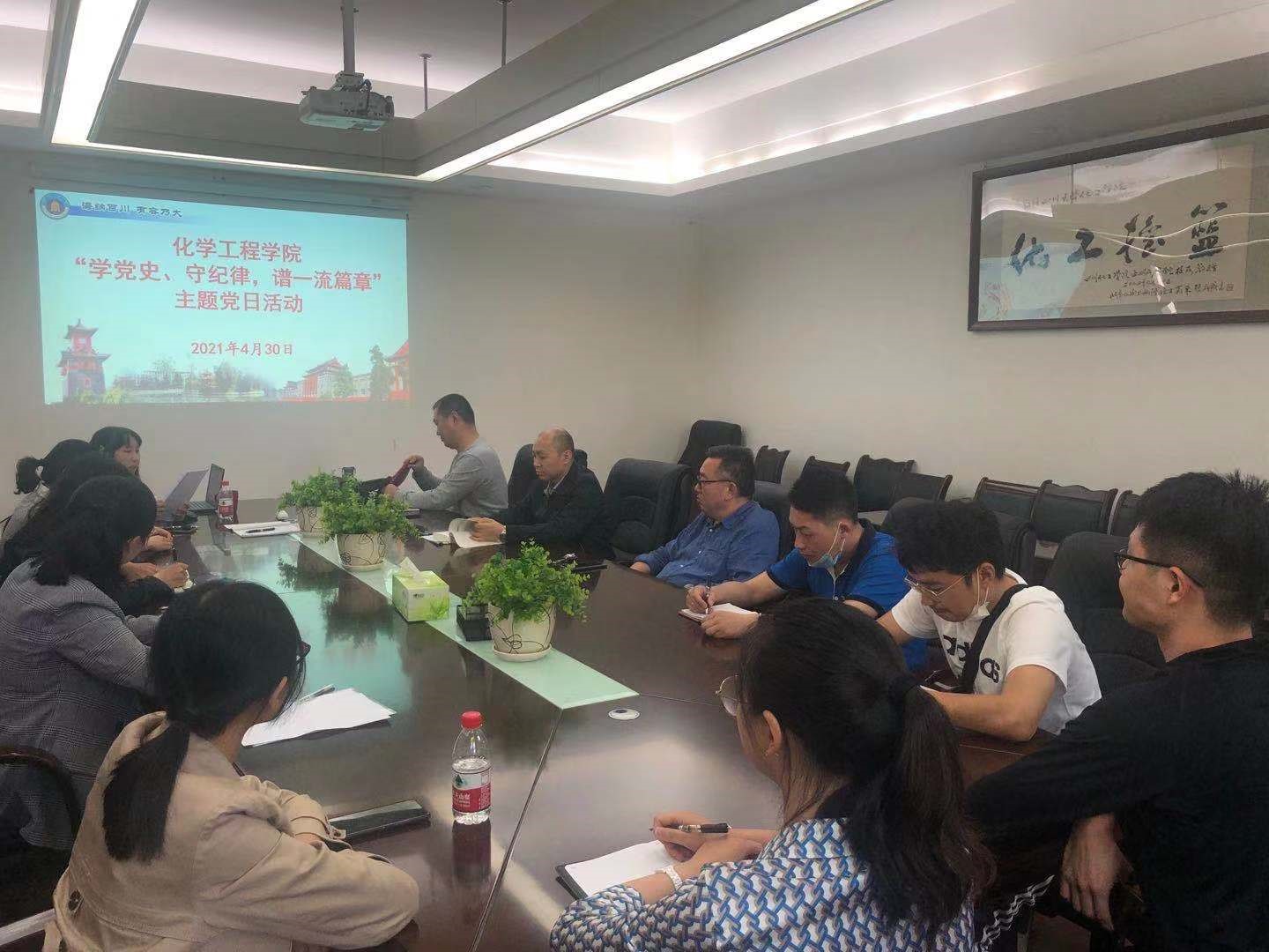 2021年4月30日下午4:30,学院行政党支部全体成员在西二教235会议室开展了“学党史、守纪律,谱一流篇章”主题党日活动,本次会议由行政党支部书记高敏同志主持。