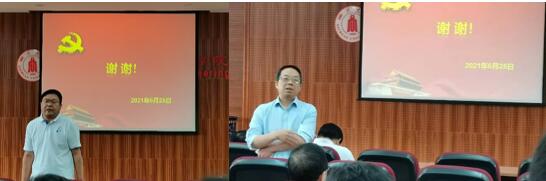 谢锐同志做了题为《学党史感悟思想伟力,学领袖赓续共产党人精神血脉》的主题党课。她首先以《这百年》、文献专题片《敢叫日月换新天》第一集(速览版)等短视频和大家一起简单回顾了中国共产党的百年历程,引领大家思考了中国共产党为什么“能”,中国特色社会主义为什么“好”,并学习了《国史讲堂》之“党史微课”系列,明确了决定中国共产党取得现代化建设巨大成就的特质。接着,引领大家学习了四川大学第四任校长、优秀共产党人、我国杰出的无产阶级革命家、教育家、历史学家和语言文字学家、新中国高等教育的开拓者吴玉章先生的生平事迹和奋斗历程。最后,谢锐同志结合神舟十二号载人飞船成功升空和对接等实事,强调了科技的重要性和作为科技工作者的责任感。“天地英雄气,千秋尚凛然”,一个有希望的民族不能没有英雄,一个有前途的国家不能没有先锋。我们应向前辈学习,结合自身实际,学党史、悟思想、办实事、开新局,建设一流专业、一流高校。