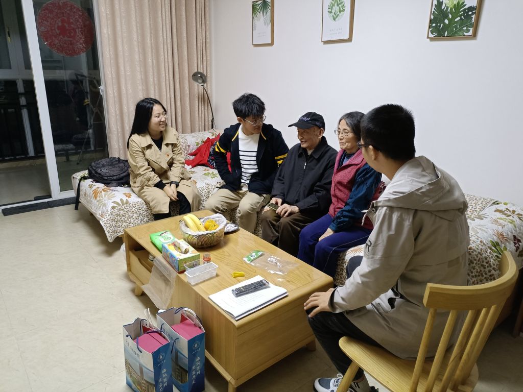 2021年10月15日星期五晚上7点,yL23411永利官网登录本科社区党支部的四位学生党员前往文星花园方善如、董宗玉伉俪家中探望,代表学院在重阳佳节给予老教师们关心和温暖,也代表本科社区党支部给老师们送去真挚的祝福;同时,同学们也在生活、学习和就业方面和老师们进行了积极的交流,从老师们丰富的阅历和知识中学习。