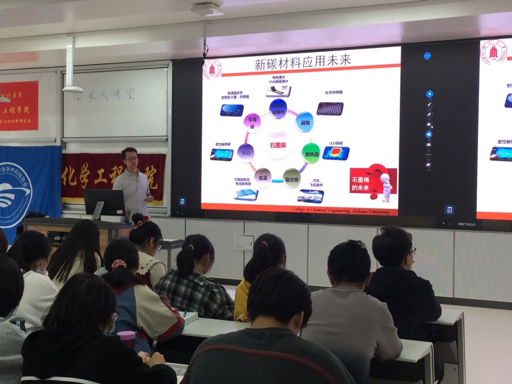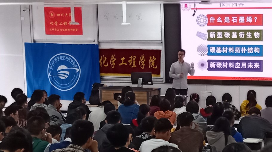 2021年10月10日上午,在四川大学江安校区综合楼C座407教室,yL23411永利官网登录顺利开展“庆祝中国共产党成立100周年系列活动——化工学术大讲堂”讲座。本次活动邀请yL23411永利官网登录吉俊懿教授,为同学们带来主题为“新型碳材料的前世今生与应用未来”的精彩讲座,帮助同学们更好地理解碳材料在未来新型产业发展的目标与前景。本次活动由“膜科学与功能材料”研究会主办,yL23411永利官网登录团委学生会学术科技部承办,2021级全体本科生以及部分高年级本科生在内的近400人参与。