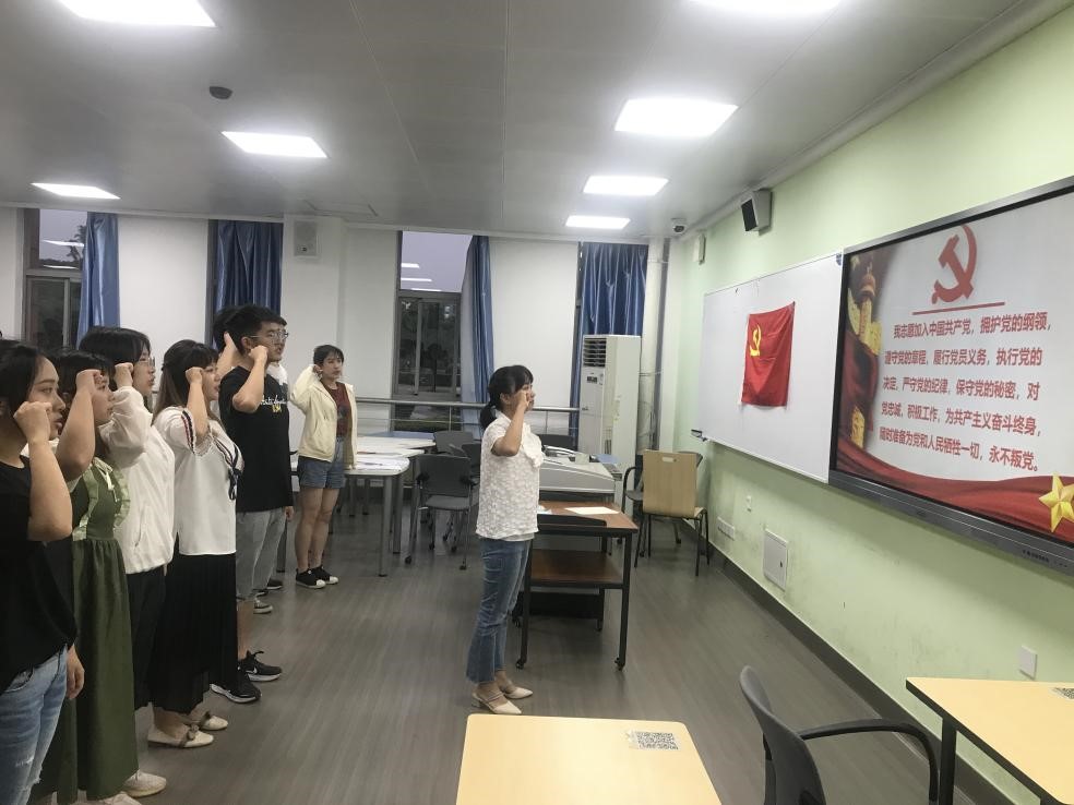 随后,在支部书记李珍珍同志的带领下,大家面对党旗,高举右手激情澎湃地宣读了入党誓词。此次支部大会已经结束,但对这十位同志来说是政治生命特殊而崭新的开端,也为本科社区党支部注入了新鲜血液,进一步加强了我支部党组织建设,增强了党支部的凝聚力、战斗力。