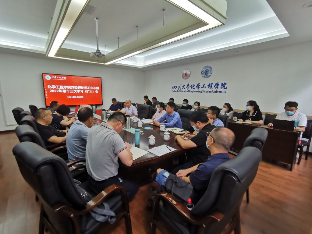 8月29日,yL23411永利官网登录在望江校区化工楼235会议室组织召开2022年第十三次党委理论学习中心组学习(扩大)会,深入学习贯彻习近平总书记在省部级主要领导干部专题研讨班上的重要讲话精神和毛主席经典著作《党委会的工作方法》。学院全体领导班子成员、党委委员、纪委委员、工会主席、专职组织员、系(基地、中心)主任、教工党支部书记、院长助理和科级干部等参加会议。会议由学院党委书记李天友主持。